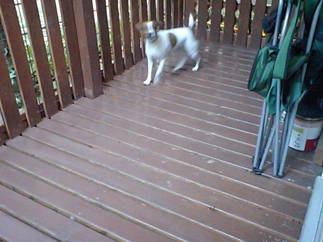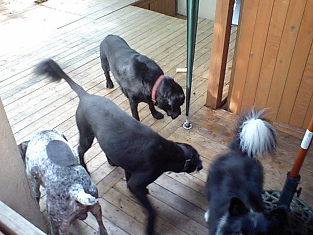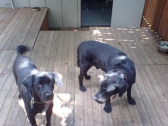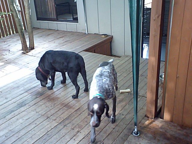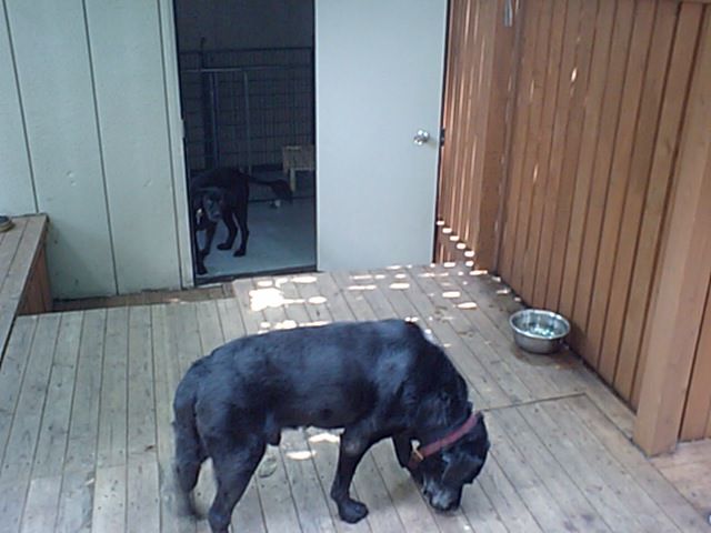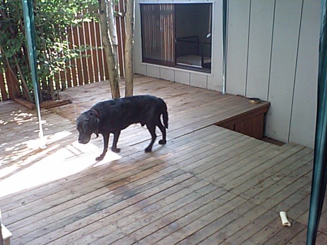 ラブラドールのブラッキー爺さんは昼寝をたっぷりした後、上のデッキでウロウロしてます。