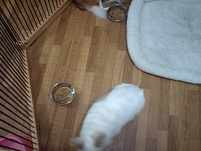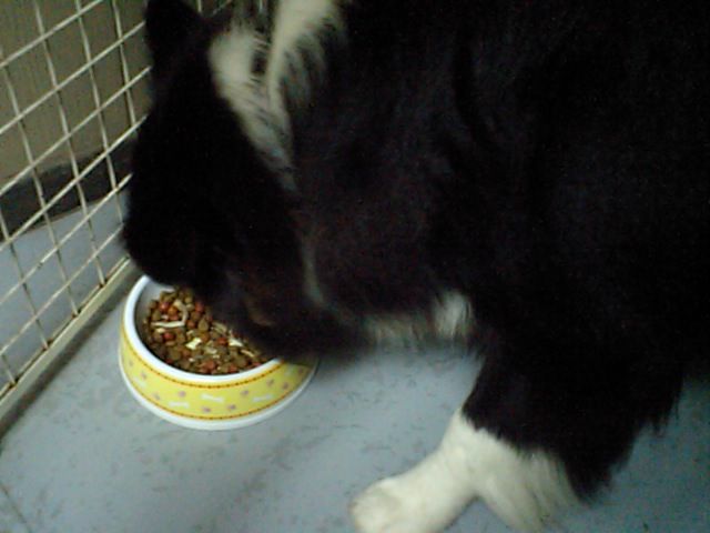 ボーダーのサエノスケ君がチェックインしました。来てすぐにご飯です。すぐに完食しました。