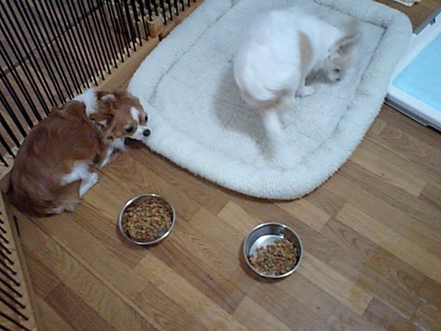 チワワちゃんズのかい君とまりんちゃん、二匹とも口を付けません。そのまま置いておきます。
