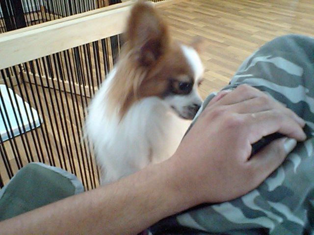 パピヨンのクルトン君は元気いっぱいで、店内やデッキを走り回ってます。店長に甘えて来ますが、抱っこされるのは嫌みたいです。