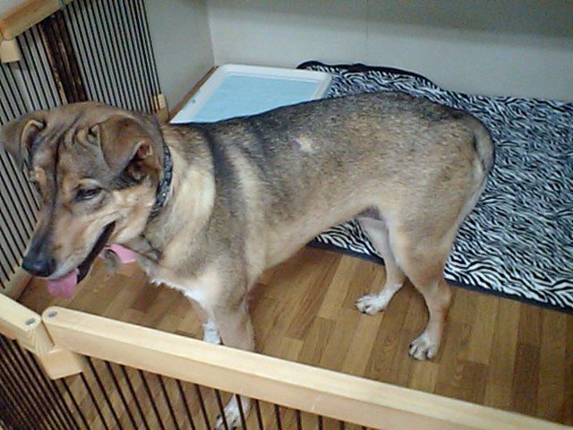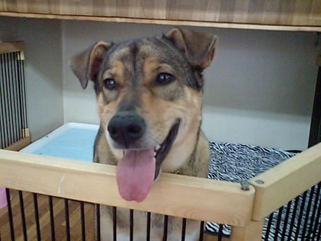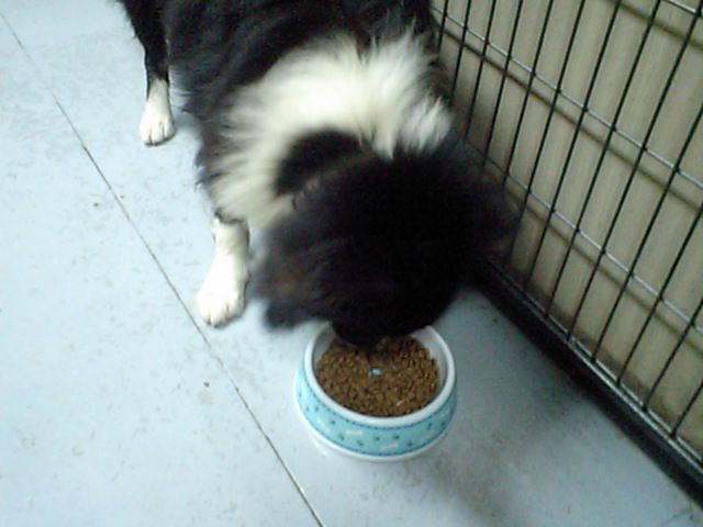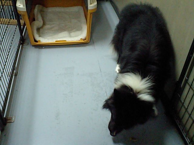 ボーダーのサエノスケ君がチェックインしました。ちょうどみんなは晩御飯で、サエノスケ君は食べて来たとの事。サークルの中で食べたそうに眺めてるサークル君、少し可哀想だったかな?