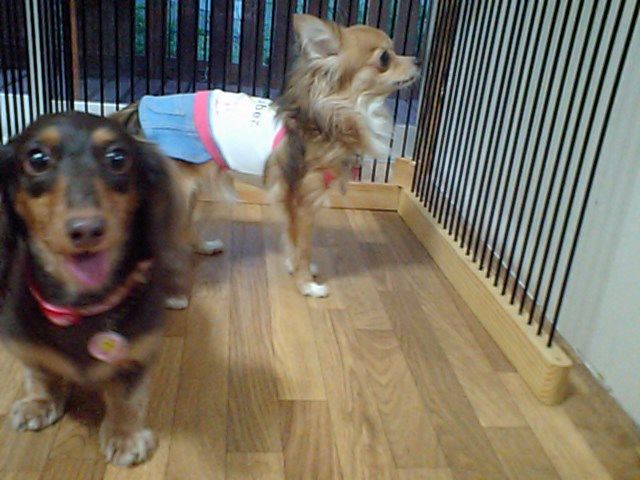 チワワのリリーちゃんとダックスのモカちゃんがチェックインしました。リリーちゃんはまだ少し店長を警戒してるみたいです。モカちゃんは最初から甘えん坊モードです。