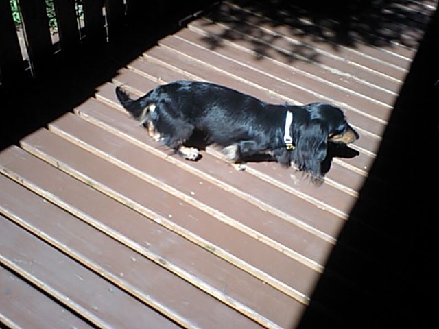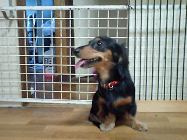 ダックスのリック君がチェックインしました。店長ともすぐに仲良くしてくれて良かった良かった。 既に店内やデッキを探検して回ってます。