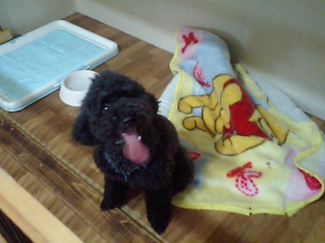 トイプーのツナ君がチェックインしました。かなり寂しがって鳴いていましたが、今はだいぶ落ち着きました。