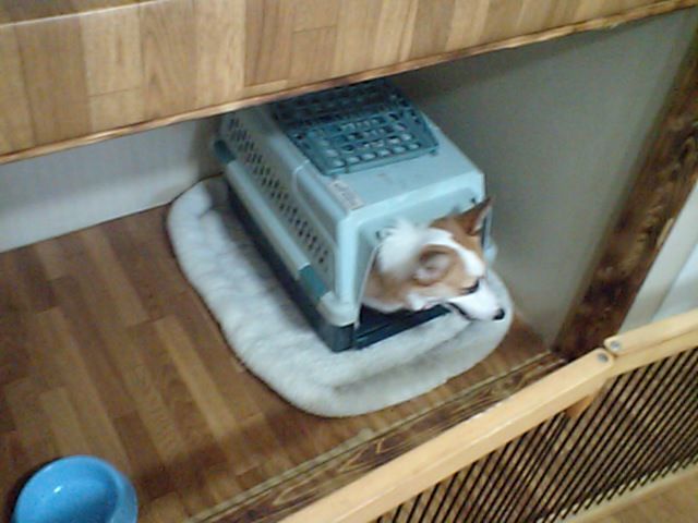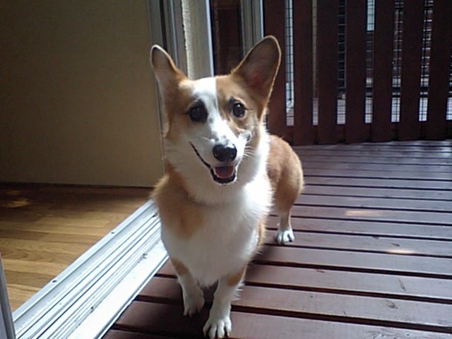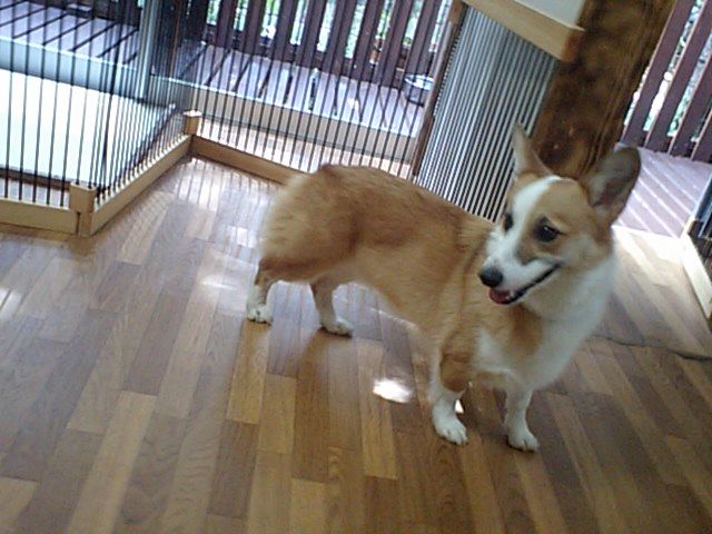 コーギーのルーニー君がチェックインしました。飼い主さんが居なくなっても寂しがる事なく、店長にも甘えてくれてます。店内やデッキを探検したり、自分のバリケンに入ったりしてます。