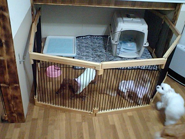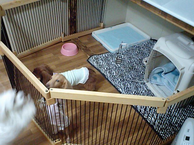 とりあえずサークルに居て貰ってますが、サンディーちゃんは大型犬が大好きとの事で、様子を見て遊ばせてみますね。