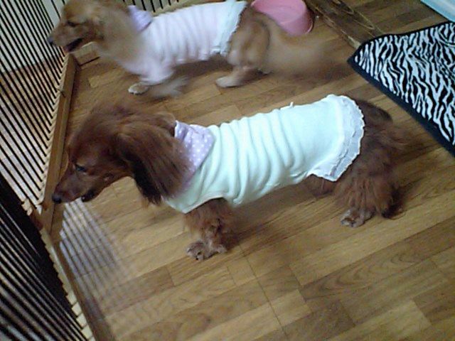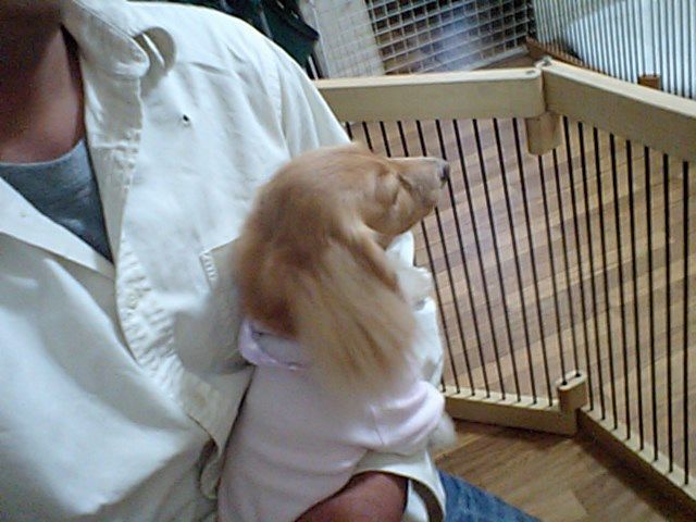 ダックスちゃんズのひなこちゃんとかえでちゃんがチェックインしました。 飼い主さんが居なくなってかなり鳴いてます。店長でも良いから甘えたいのか、かえでちゃんは抱きついて来ます。可愛いですね。