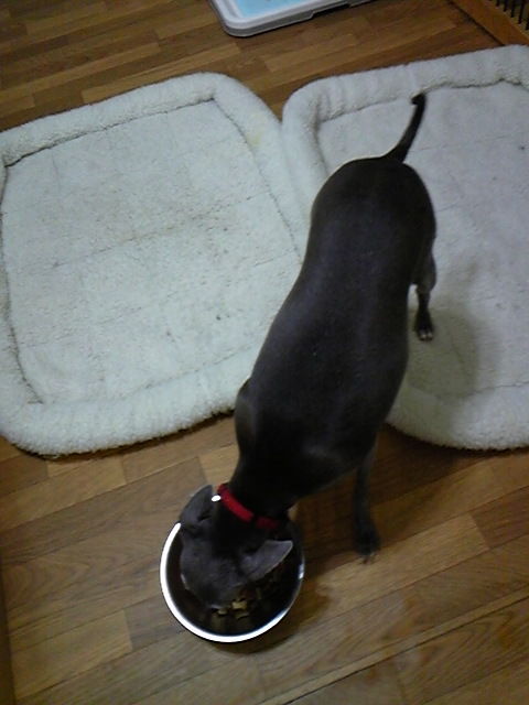 イタグレちゃんズのサンディーちゃんとトニー君、二匹ともたちまち完食しました。