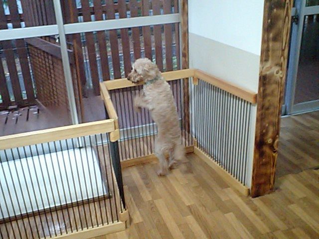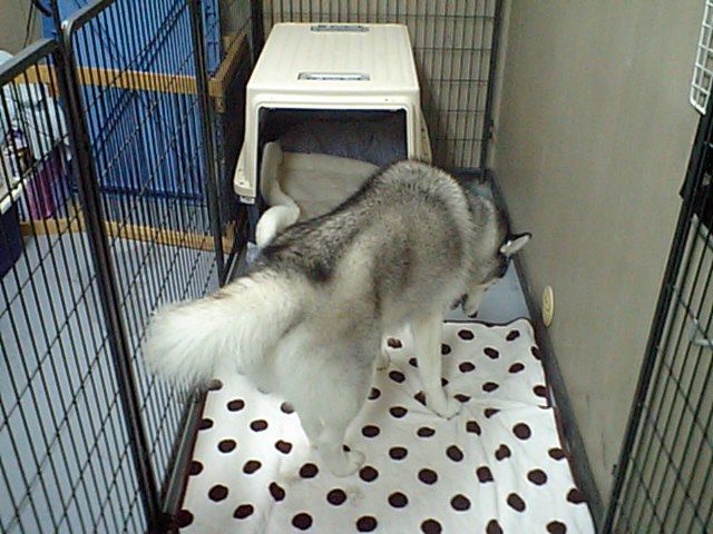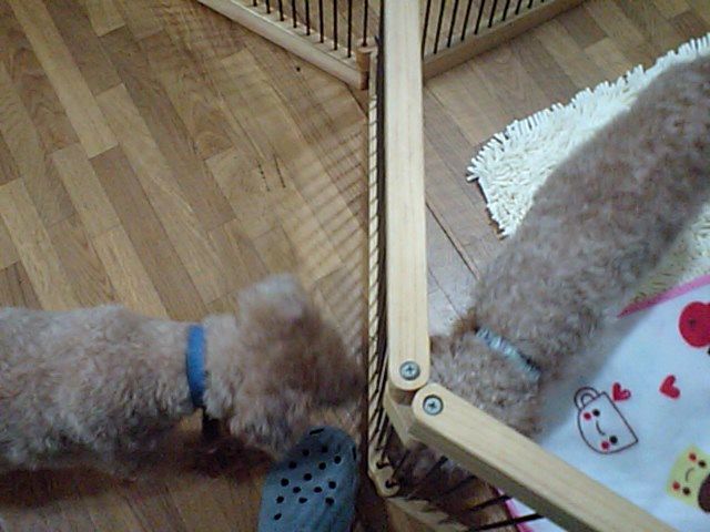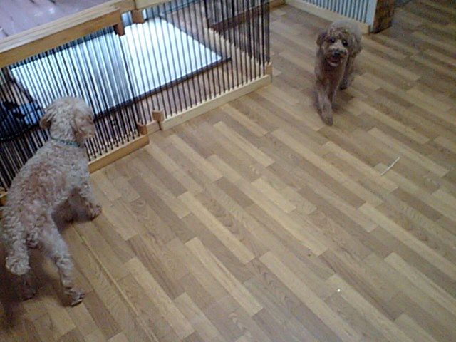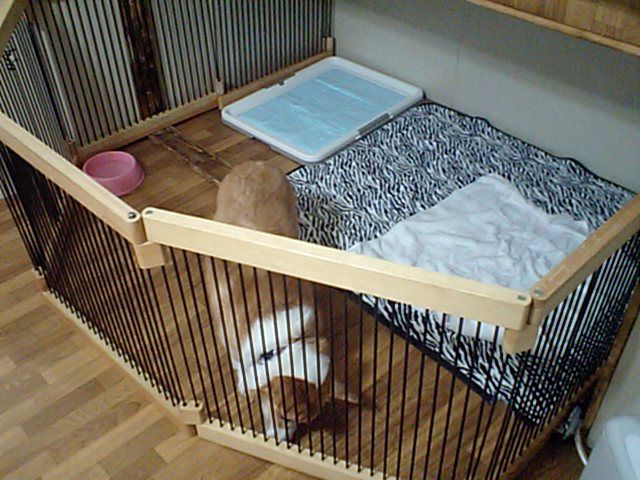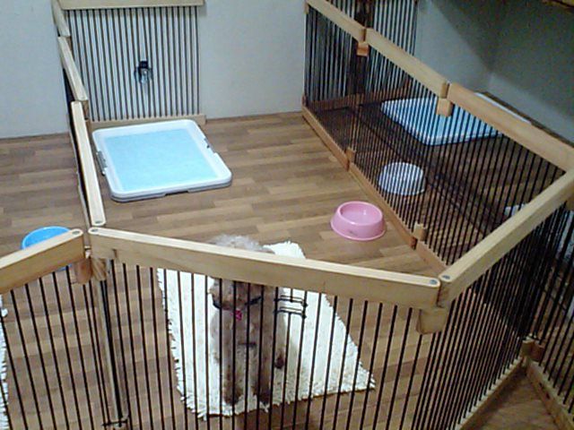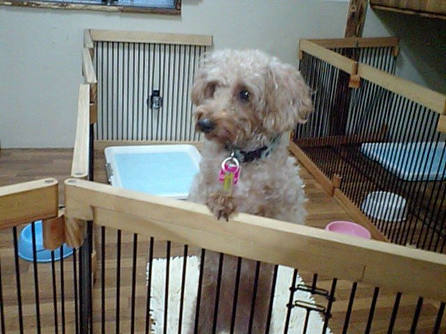 とりあえずサークルの中でダディーの雰囲気に慣れて貰います。少し吠えてましたが、すぐに落ち着きましたよ。