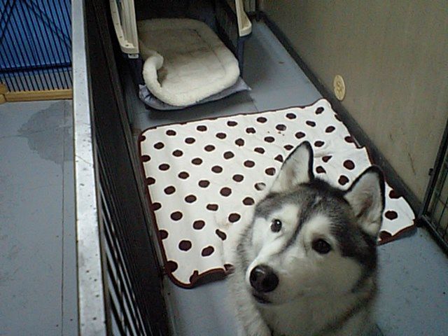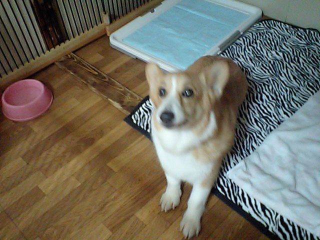 コーギーのコルト君がチェックインしました。他のワンコは苦手ての事、とりあえずサークルに居てもらいますね。