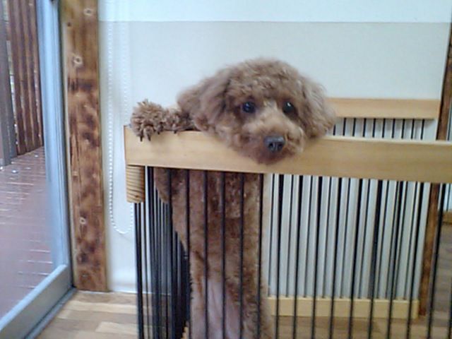 少し寂しがって窓の外を眺めてます。 トイプーのチェリーちゃんとも仲良くできそうです。