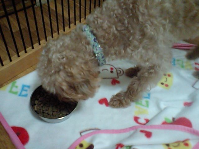 トイプーのチェリーちゃん、夕べのご飯は6粒残して食べてました。今朝は少し口を付けただけです。