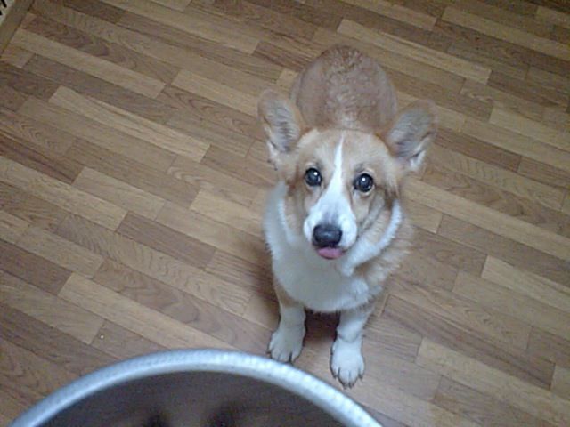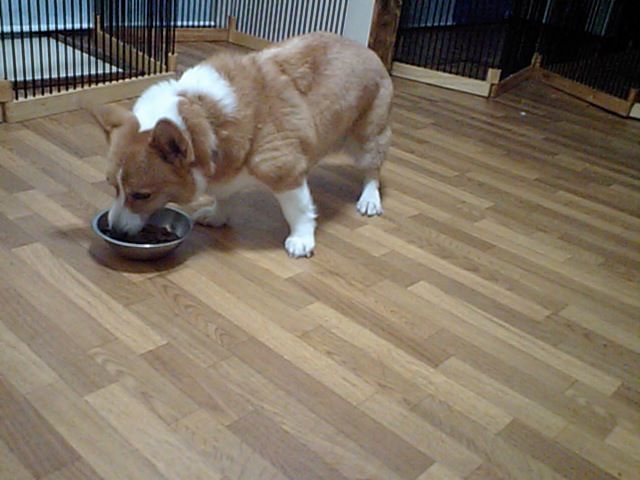コーギーのコルト君、今夜の小型犬エリアは貸切状態。でも他のワンコが苦手だから気楽かな?