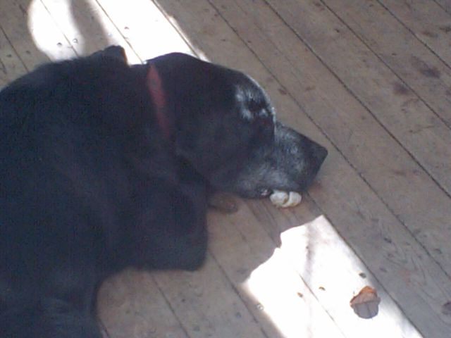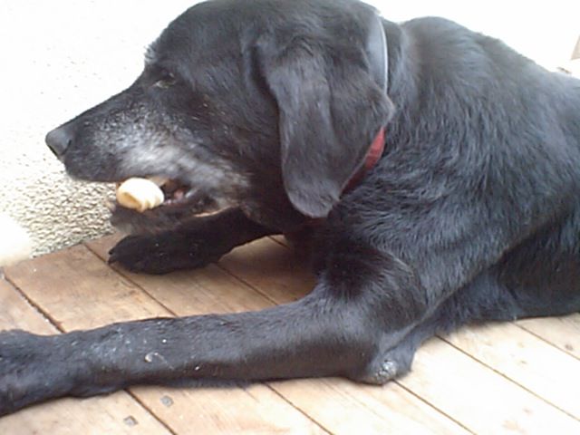 ブラッキー爺さんは骨ガムを食べてご機嫌です。