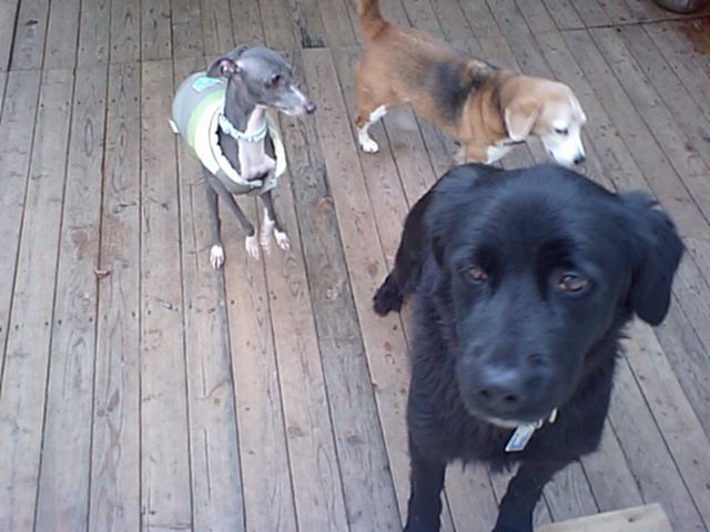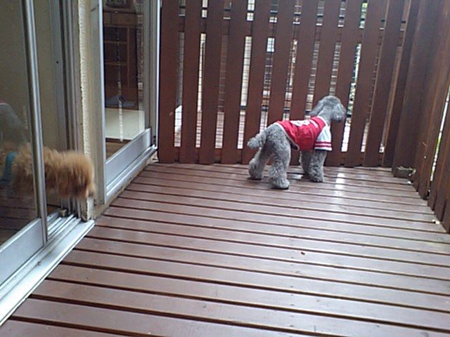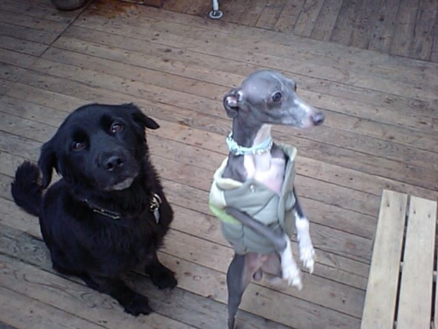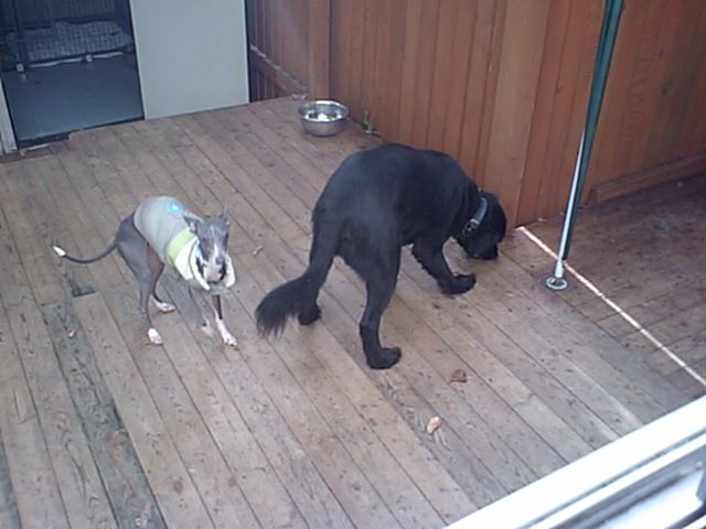 イタグレのミッキー君は元気いっぱいです。なんちゃってフラットの大治郎を遊びに誘ってます。