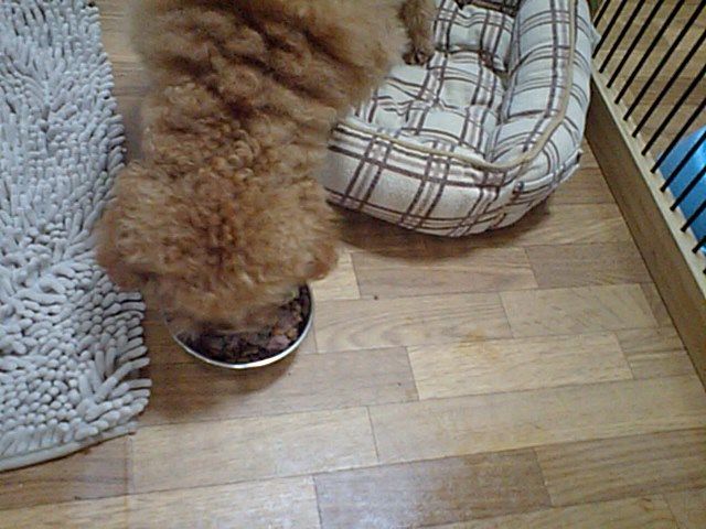トイプーのルルちゃんは夕べのご飯は完食してました。今朝は少し口を付けただけです。