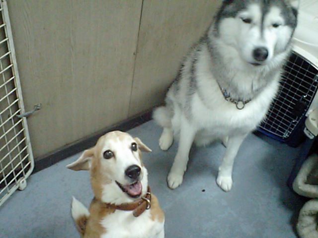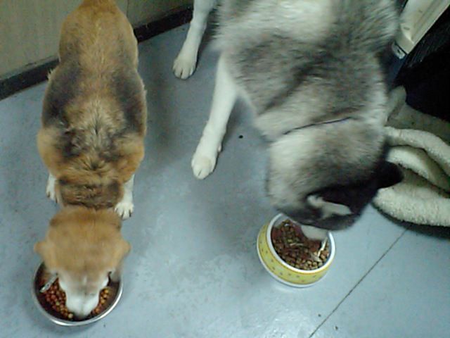 長期預かりハスキーの小太郎君とビークルのビーちゃん、仲良く揃って完食しました。