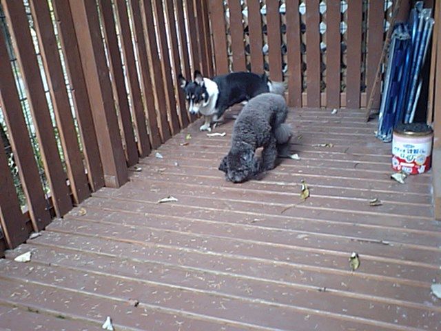 小型犬エリアも大型犬エリアも、ご飯の後はデッキで遊んでます。