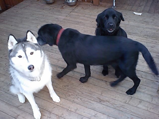 遊び好きのサエノスケ君、ハスキー小太郎君や柴のハチ君と三つ巴で遊んでます。