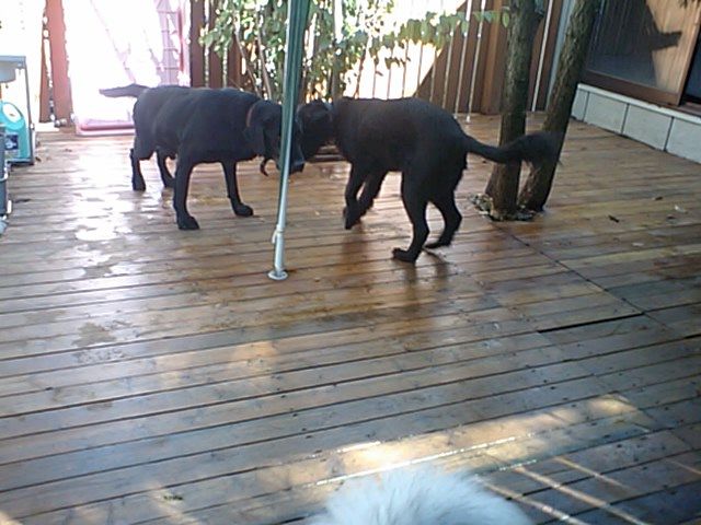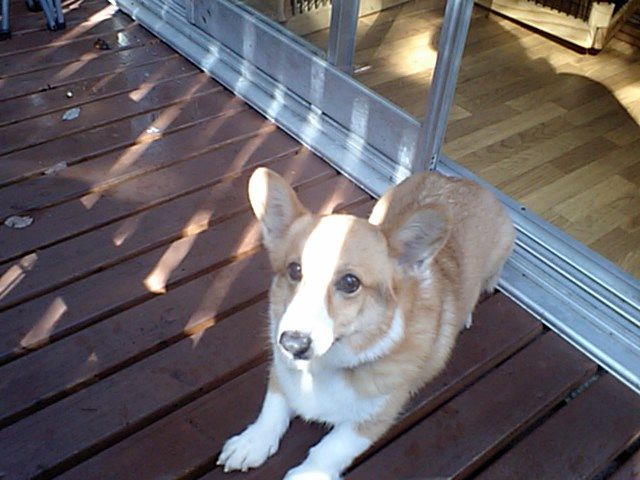 小型犬エリアではコーギーのコルト君がデッキにいます。