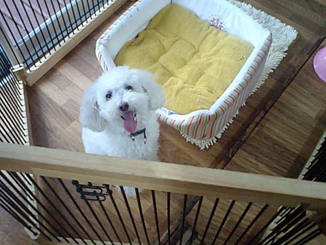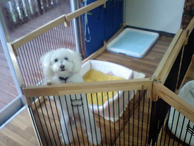 飼い主さんが居なくなってしばらく鳴いています。落ち着くまでサークルに居て貰いますね。