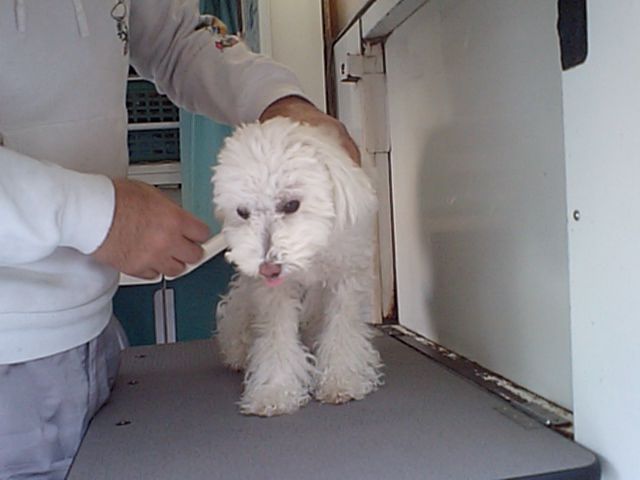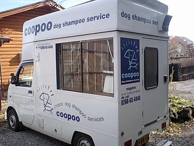 お散歩が終わったタイミングで、移動シャンプー屋さんのクープーさんが来ました。