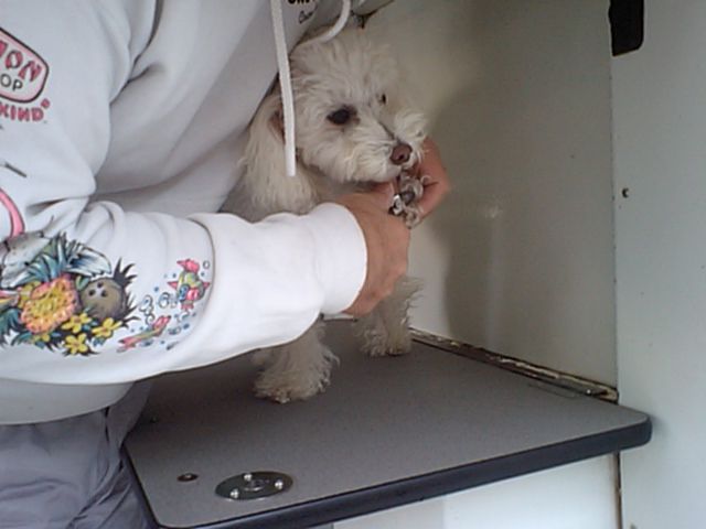 先ずは爪切りから始めてます。シナモン君は大人しくトリミングされてますよ。