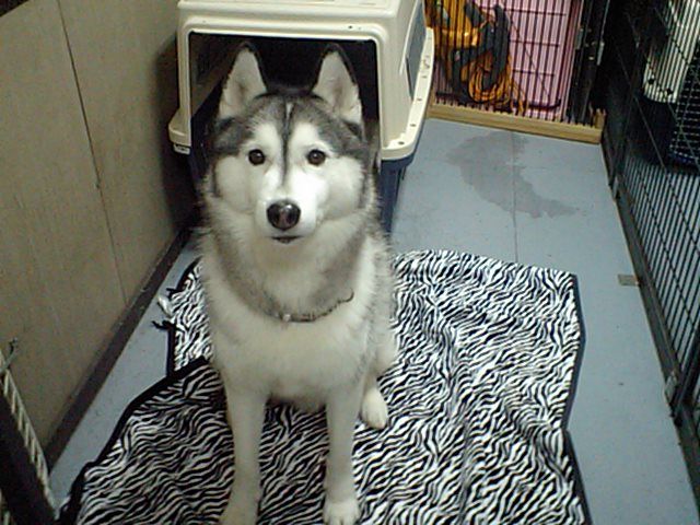 長期預かりハスキーの小太郎がチェックインしました。週末から今日にかけて帰宅して、飼い主さんにいっぱい甘えてきたかな?