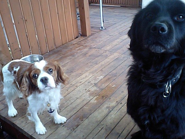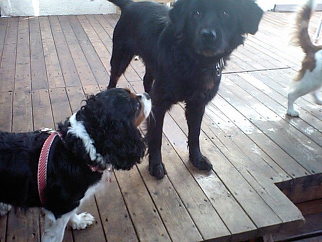 晴れてきたので、キャバリアちゃんズは大型犬エリアで遊んでます。