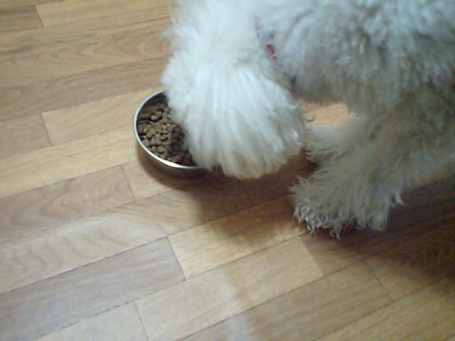 トイプーのシナモン君、少し口を付けただけです。そのまま置いておきます。