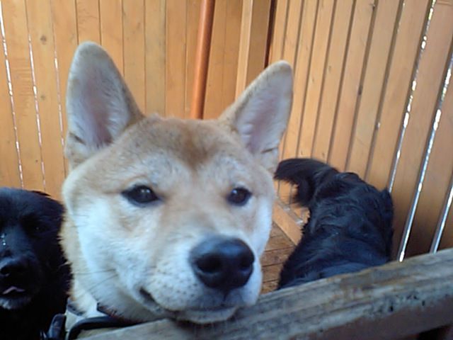 常連柴のハチ君が今週も来てくれました。 来るなりボーダーサエノスケ君とガウガウと遊んでます。