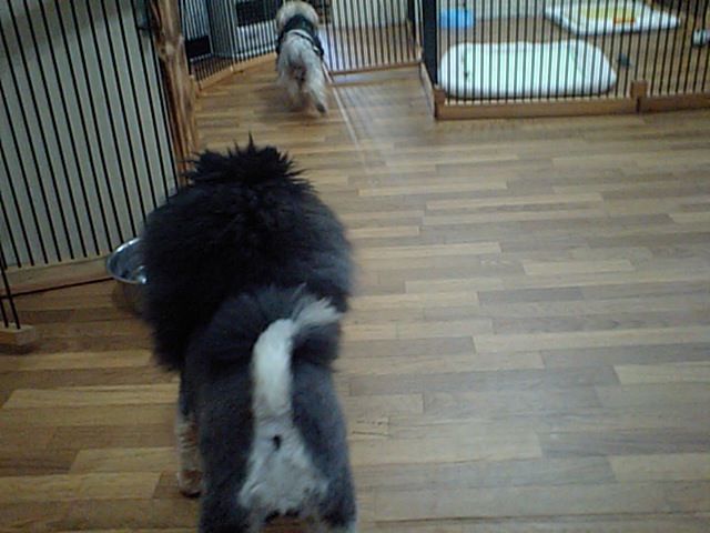 12月にも来てくれたポメラニアンのルナちゃん、今月も来てくれました。 ダディーを覚えてくれてるみたいです。 ただ今回は遊べるワンコが居ないのが残念、みんな犬嫌いなワンコ達なんです。 ルナちゃんはサークルから出て遊んでます。