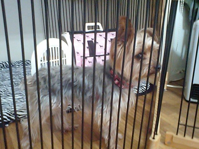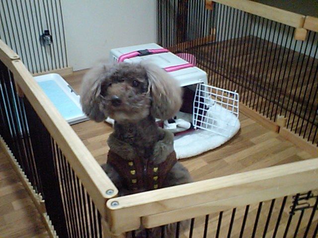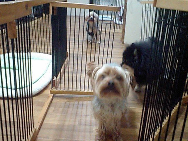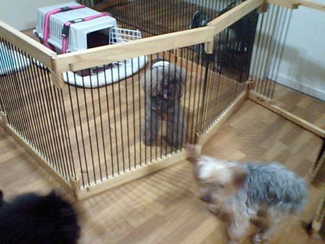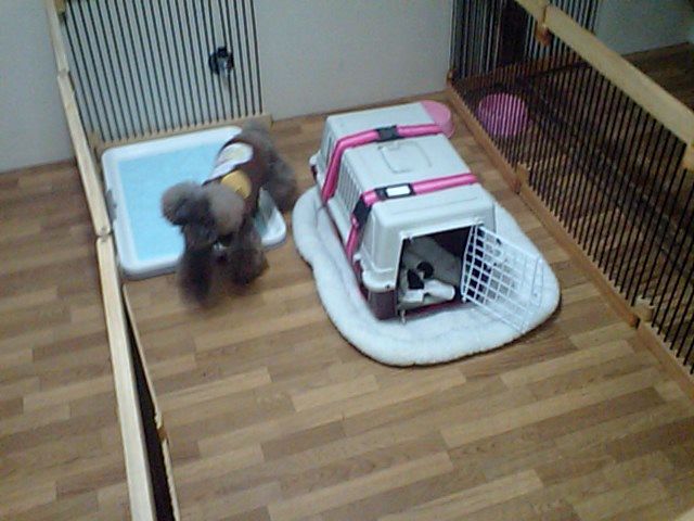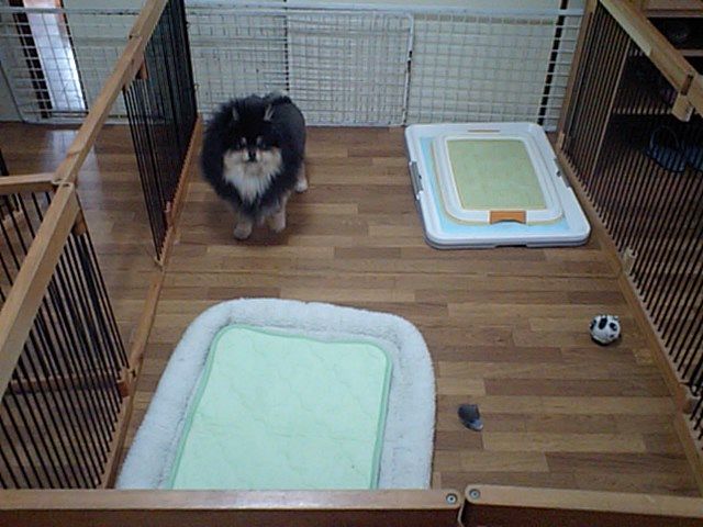 ロイ君はワンコや人間が苦手なタイプ、サークルに居てもらってます。