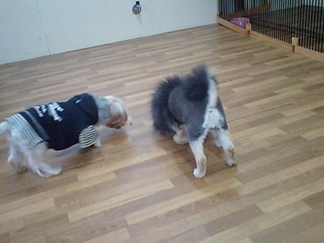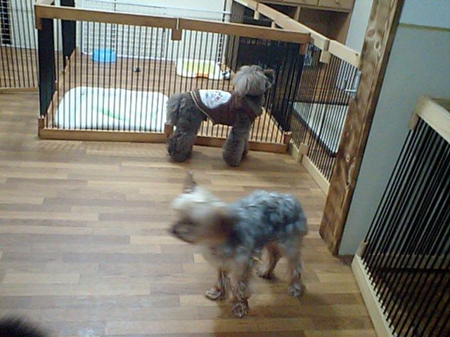 シャイ犬のヨーキーロイ君、年末に来た時は他のワンコを全然受け付けませんでした。が、今回は二回目で慣れてきたのか?少しずつ他のワンコに興味を示し始めてました。