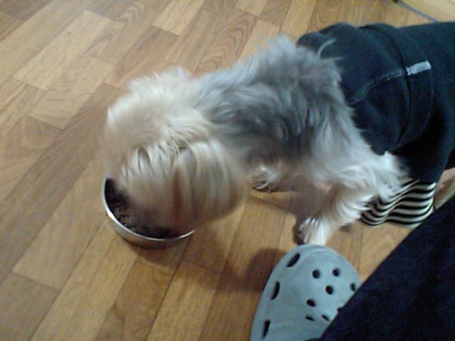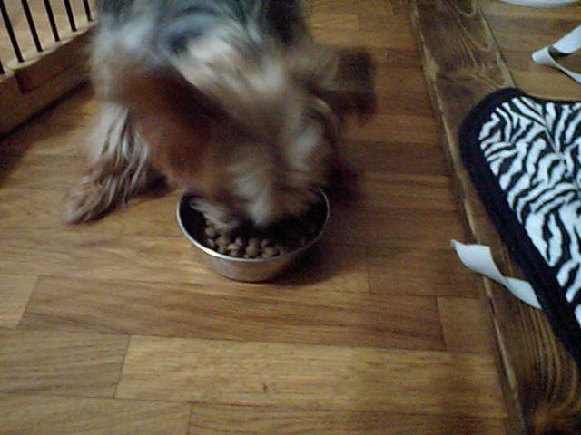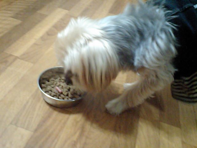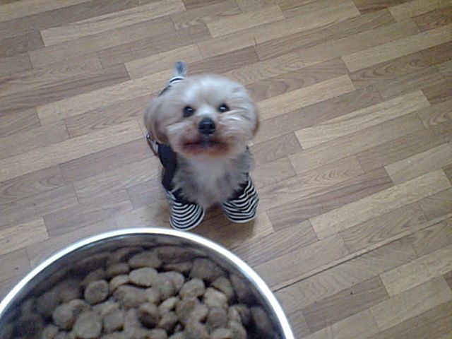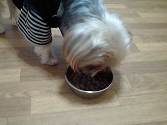 長期預かりヨーキーのラッキー君、ドライフードのみでしっかり完食しました。ラッキー君は長期預かりなんですが、急遽、明日お家に帰る事が決まりました。店長やスタッフBは寂しくなりますが、飼い主さんが予定より早く退院できるのは良かったです。 ラッキーも飼い主さんに会えて喜ぶでしょう。良かった良かった。ダディーを忘れないでな、ラッキー。