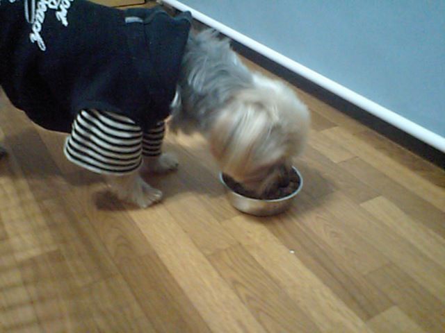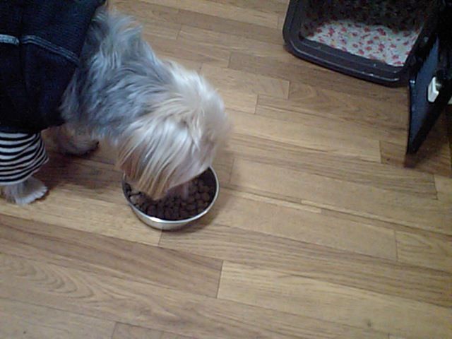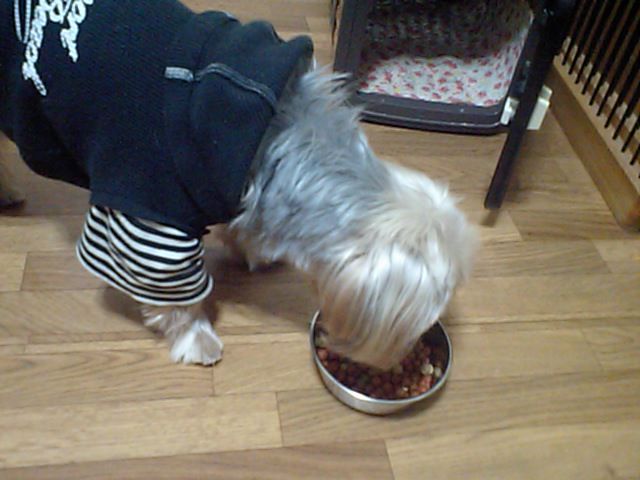 長期預かりヨーキーのラッキー君、ドライフードをしっかり完食しました。