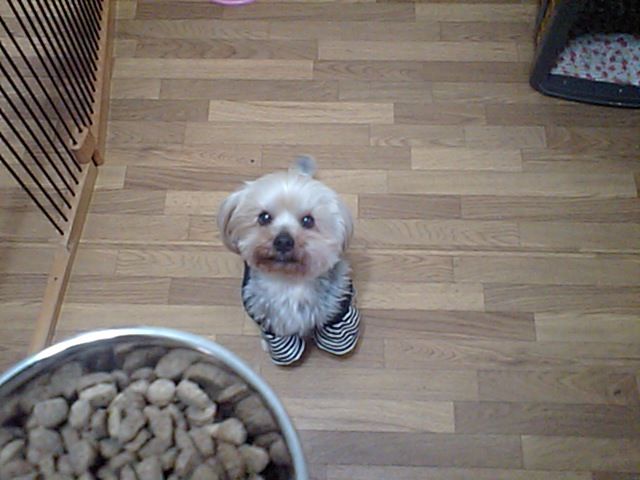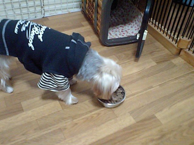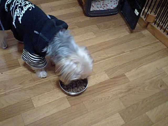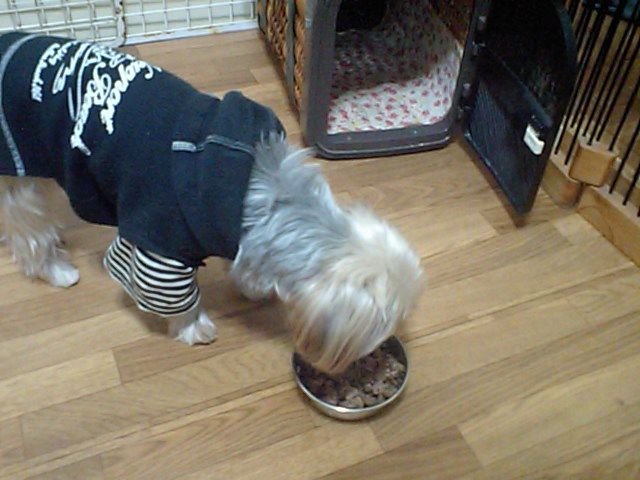 長期預かりヨーキーのラッキー君、今日は缶詰め無しのドライフードのみで完食しました。