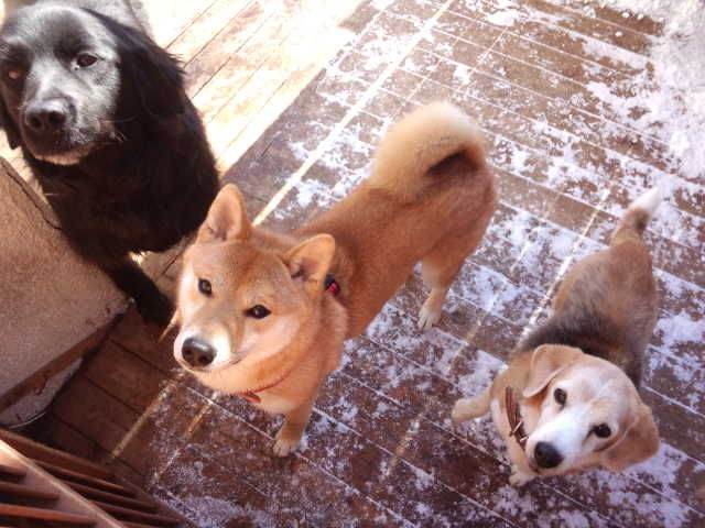 先に食べ終わったビーちゃんが、もっと欲しそうな顔をして見ています。
