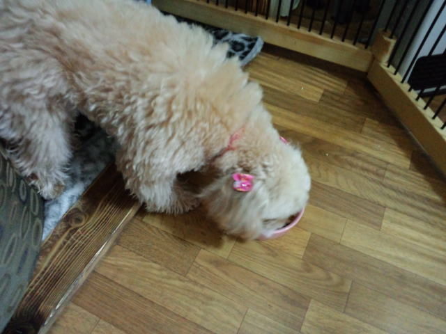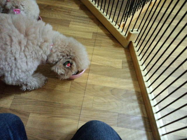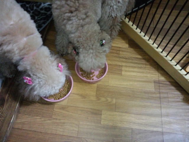 トイプーちゃんズのマコちゃんとモモちゃん、朝ご飯はほぼ食べました。晩御飯は八割くらい食べました。残りはそのまま置いておきます。