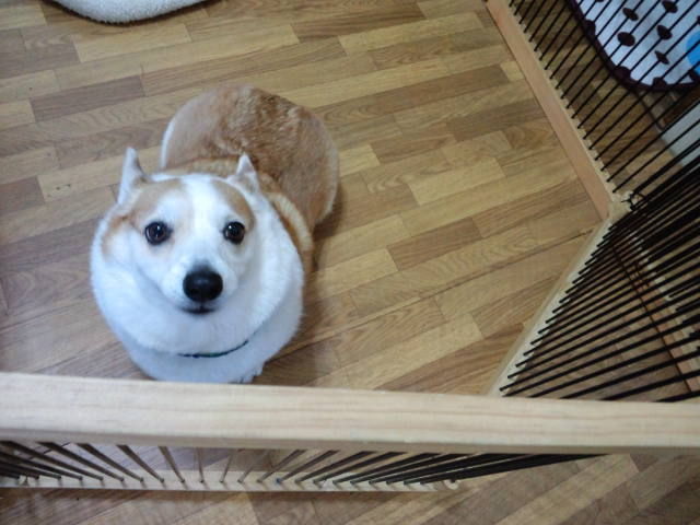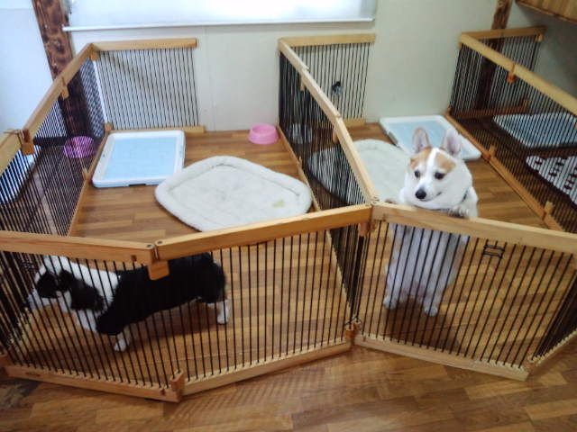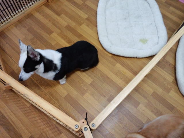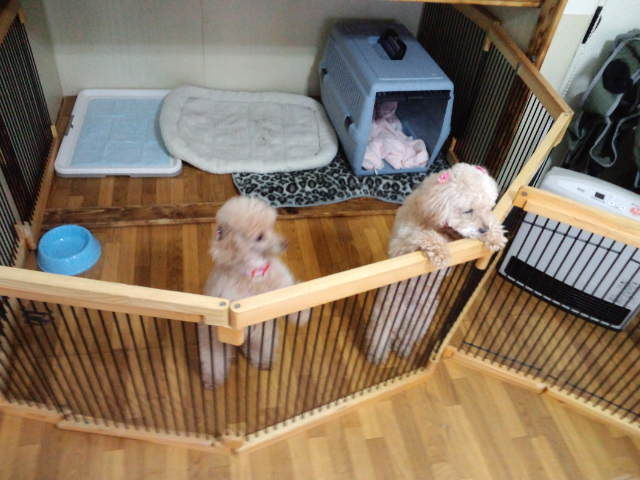 甘え過ぎてナナちゃんがストレスになるかも?なので、とりあえずサークルを分けています。