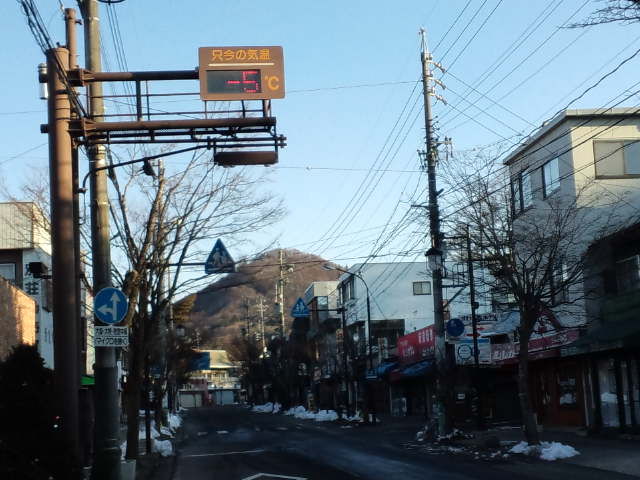 今朝の軽井沢の気温はマイナス5℃、天気は晴れてます。