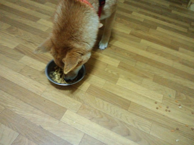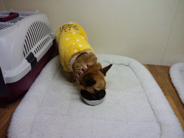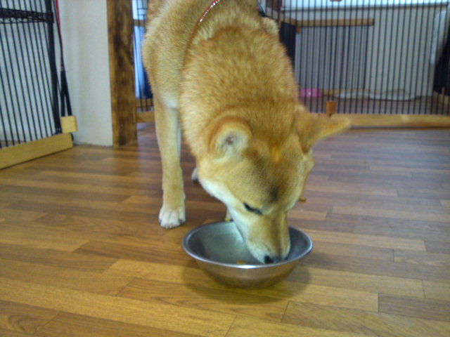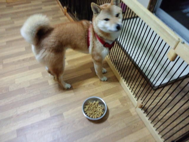 柴のハチ君、半分くらい食べました。他の子のご飯は欲しがるのですが…。