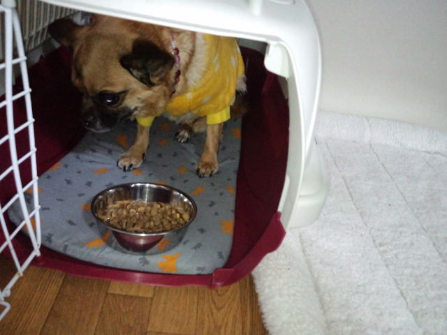 ミックスのニコちゃんはキャリーケースの中で完食しました。