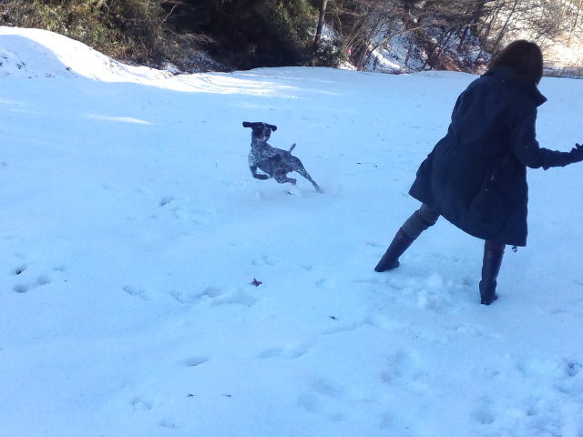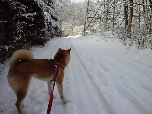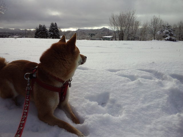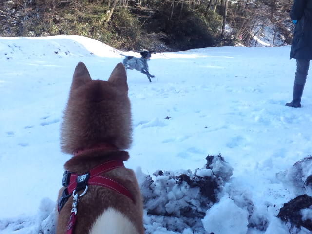 今日の軽井沢は晴れました。白銀の世界で元気に歩くハチ君、嬉しそうです。