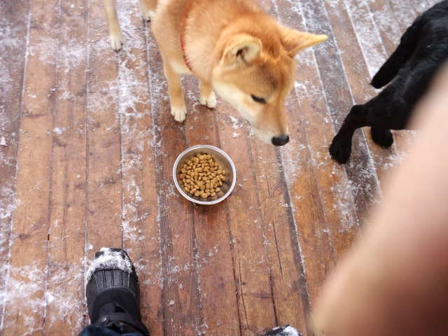 柴のハチ君、口をつけません。ジャーキーは欲しがるので、食欲はあるみたいです。
