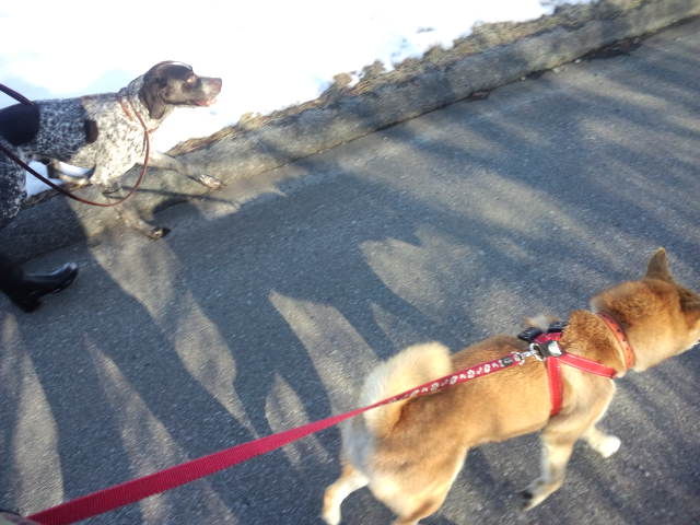 柴のハチ君のオプション散歩してきました。 今日も夕方はポインターのモス君と一緒に歩きました。