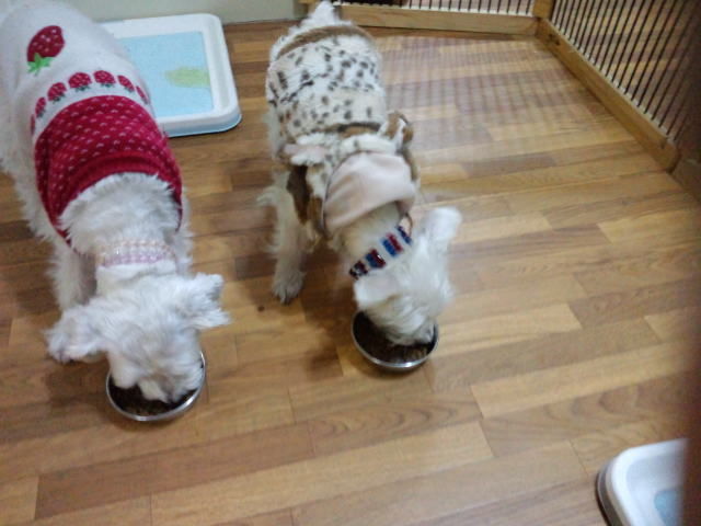 シュナウザーのウリちゃんとプクちゃん、並んで完食しました。