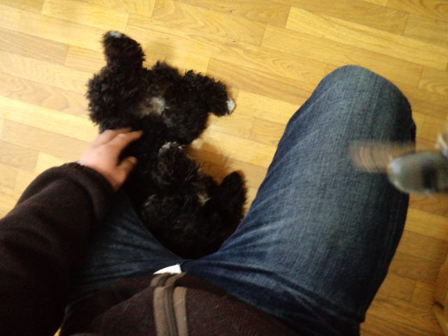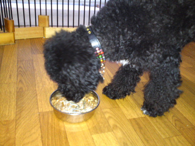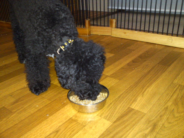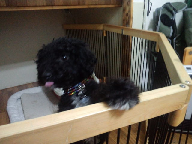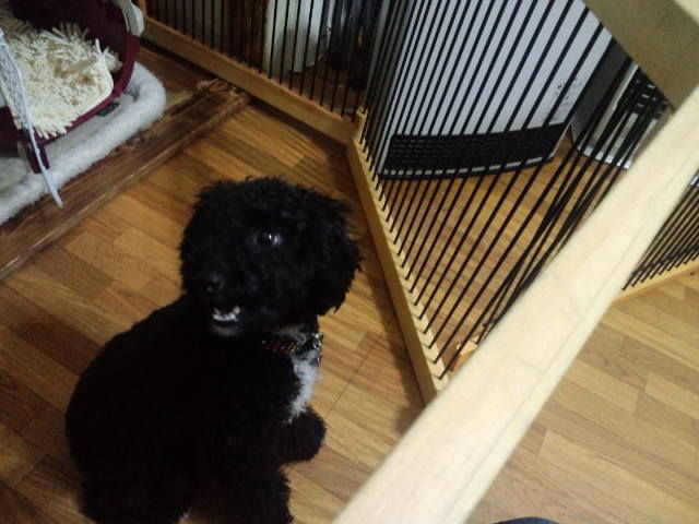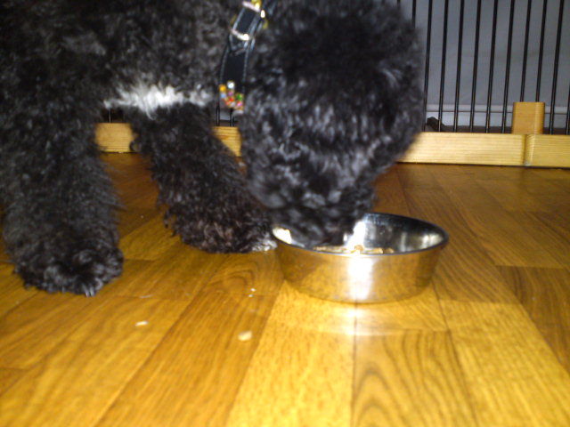 トイプーのティアラちゃん、夕べのご飯は完食してました。今朝は少し口を付けただけです。そのまま置いておきます。