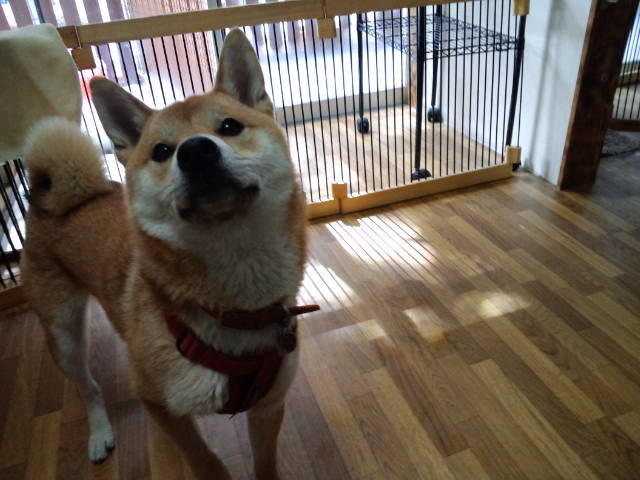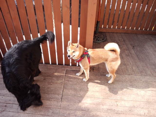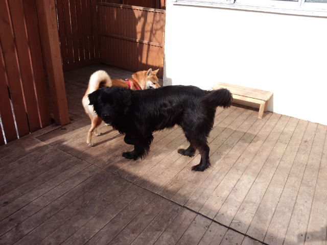 入るなり大治郎にじゃれついているハチ君、カメラを向けると止めてしまうのが残念です。仲良くしてますよ。