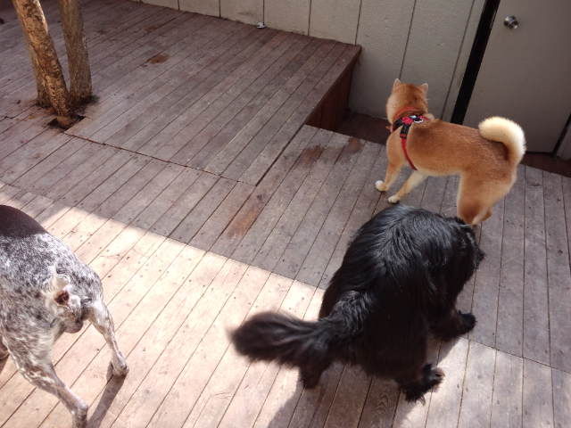 途中で大好きなマロンちゃんに出会って、遊びたくて仕方ないハチ君でした。